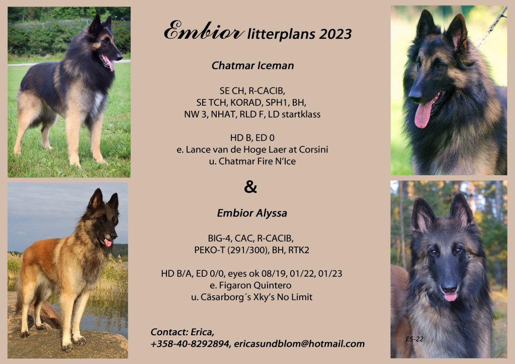 C-Kullen/C-Litter Chatmar Iceman * Embior Alyssa*03.04.2023 Parents: Puppies: Embior Cirilla Embior Creating Thunder Embior Calling the Storm Embior Coloured with Moonlight Embior Cascade of Happiness Dela det här: Dela på X (Öppnas i ett nytt fönster) X Dela på Facebook (Öppnas i ett nytt fönster) Facebook Gilla Laddar in …